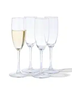 Een feestelijke tafelsetting is niet compleet zonder fluitjes. Deze hoge, smalle glazen zorgen ervoor dat de bubbels langer blijven bruisen.