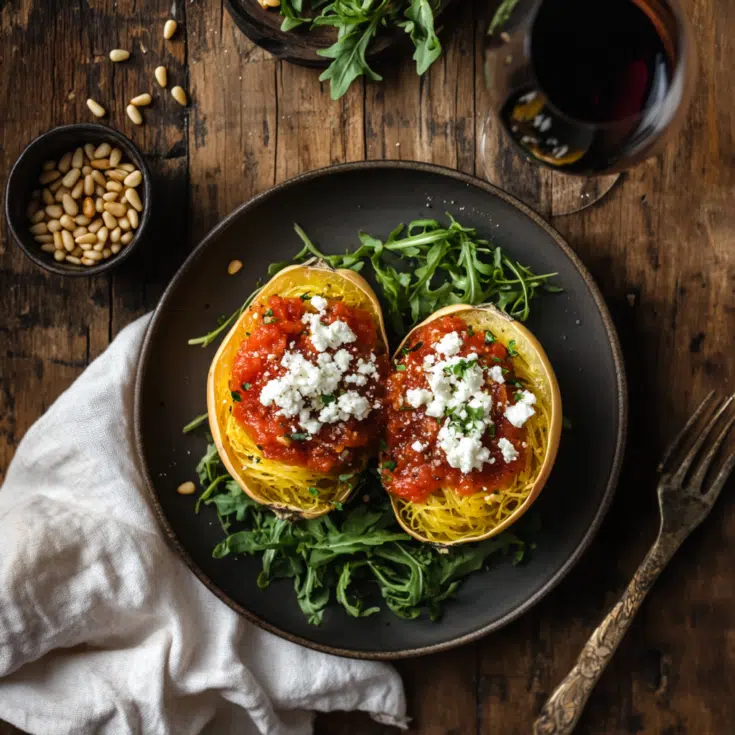 Ben je op zoek naar een gezond, smaakvol én verrassend gerecht? Deze spaghettipompoen met tomatensaus en geitenkaas is een perfecte keuze voor een lichte, maar vullende maaltijd. Het gerecht zit boordevol groenten, biedt een heerlijke balans tussen hartig en fris, en is makkelijk aan te passen met leuke extra’s. Ideaal voor een doordeweekse avond of een ontspannen diner met z’n tweeën. Bonus: je eet direct uit de pompoenschil, wat niet alleen mooi staat, maar ook minder afwas oplevert!
